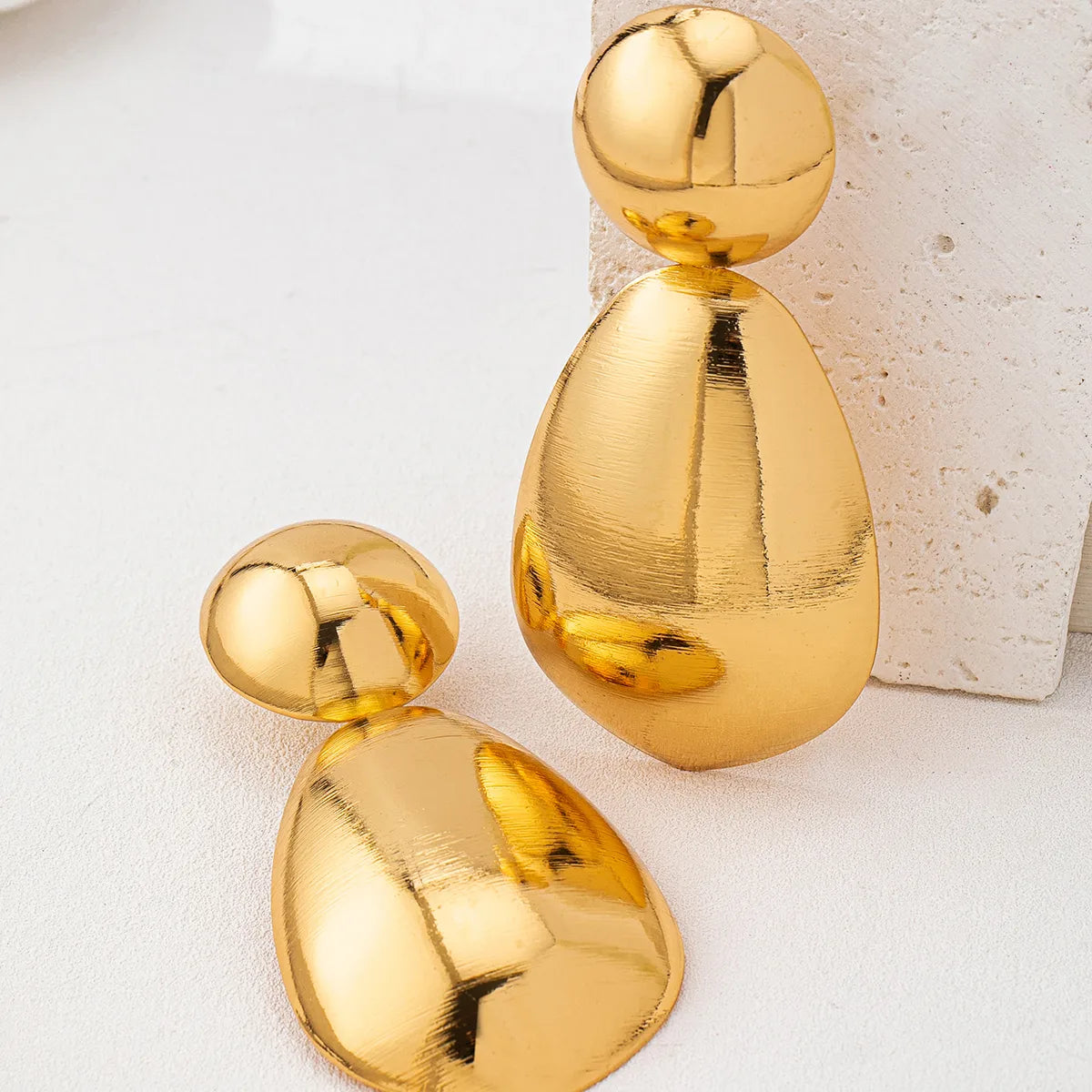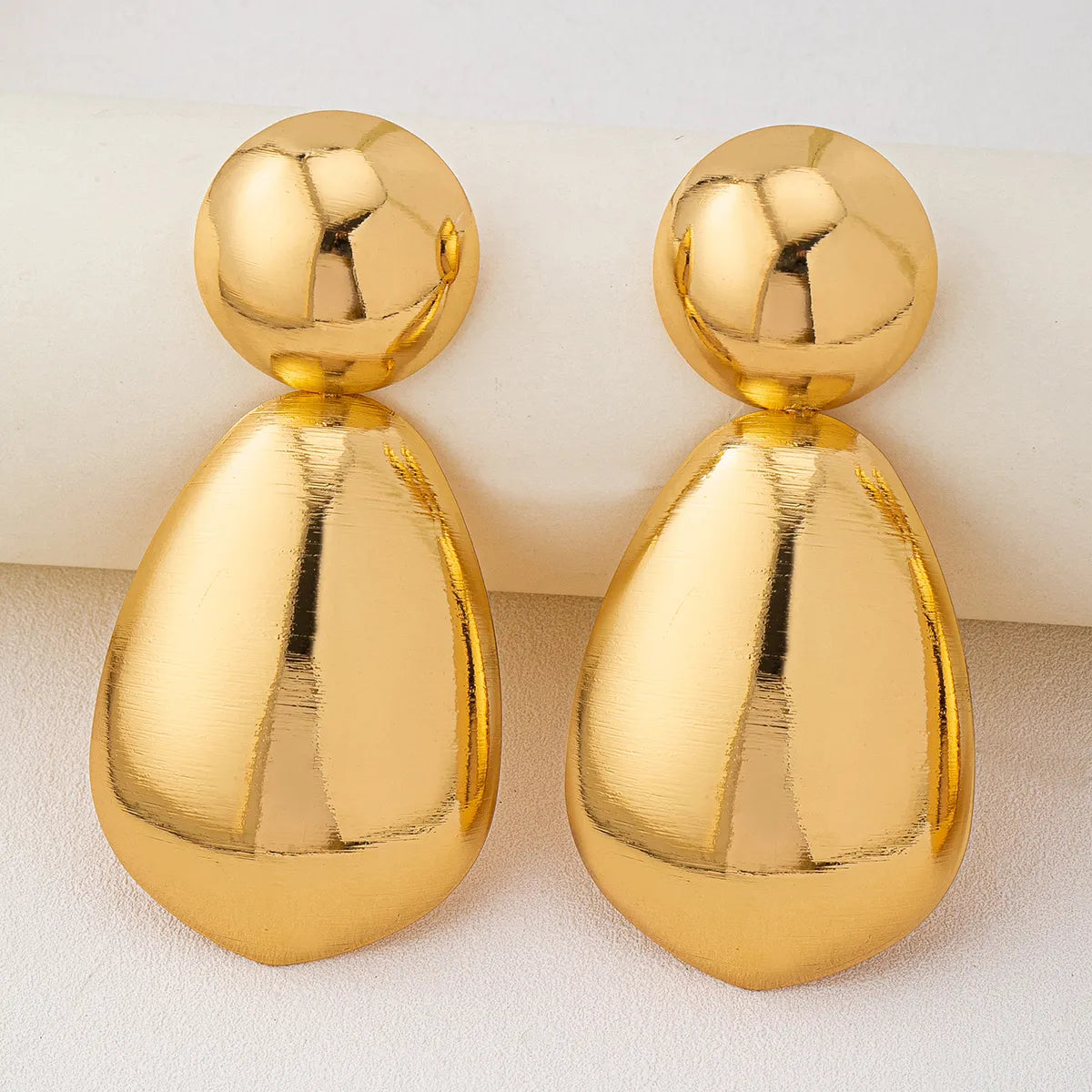 Punk Style Metal Waterdrop Earrings Women's Fashion Simple Geometry Smooth Oval Shaped Hoop Earrings