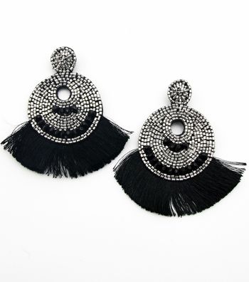 STATEMENT ETHNIC BEADED FRINGE EARRINGS with Fan and leather backing.