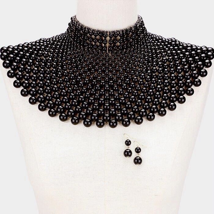 Pearl statement bib style choker necklace set. Lobster clasp closure. With Matching Earrings.