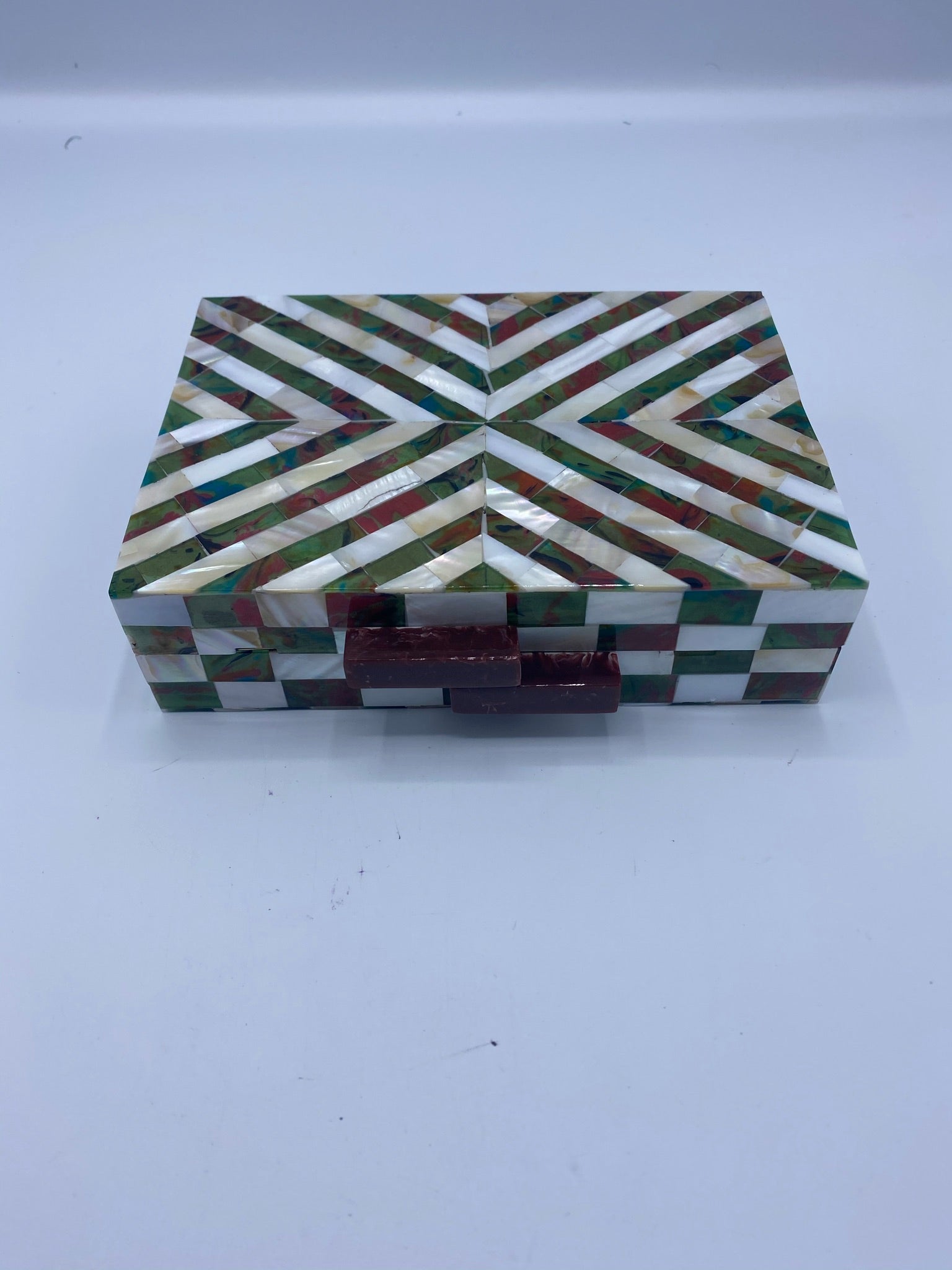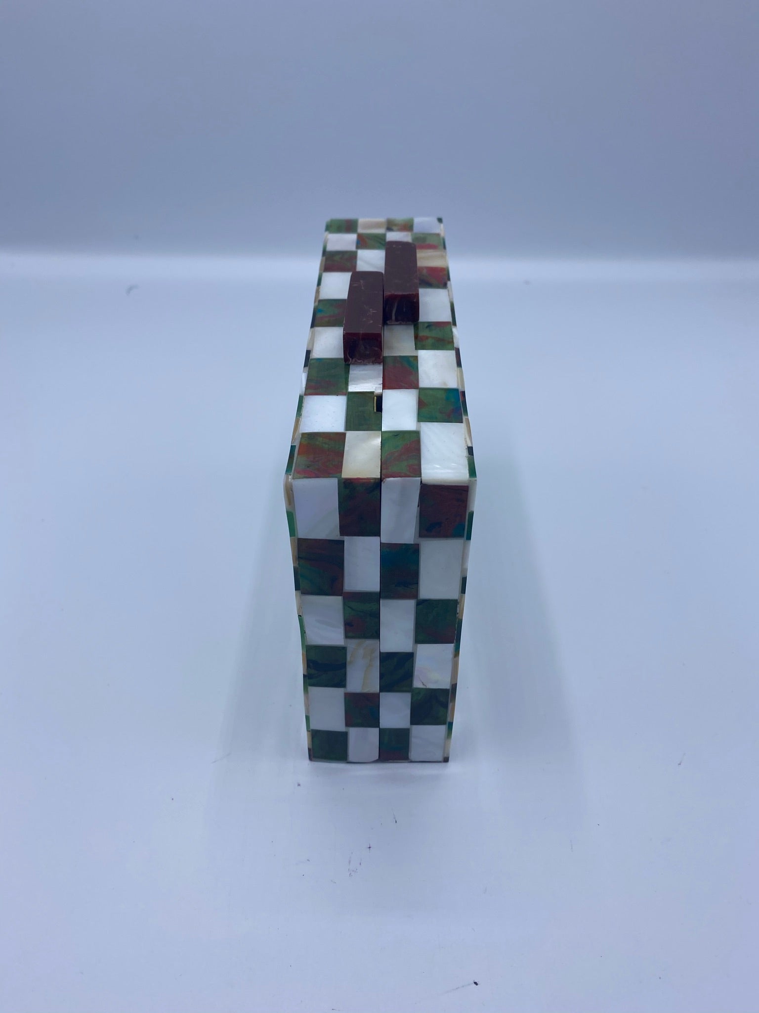 Handcrafted Chevron Green and White Mother Of Pearl Clutch