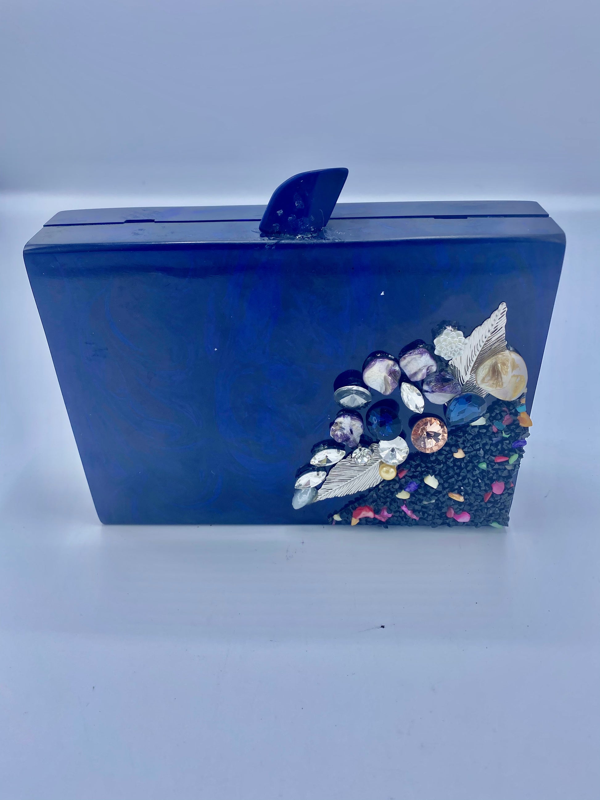 Handcrafted Triangle Resin with embellishment of pearls and stones Clutch
