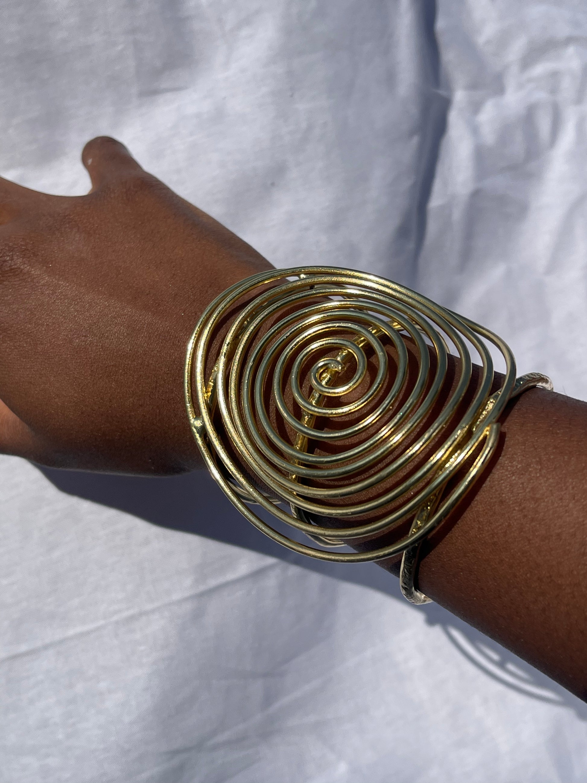 Handmade Brass Spiral Cuff Bracelet.Adjustable to size. One size fits all.