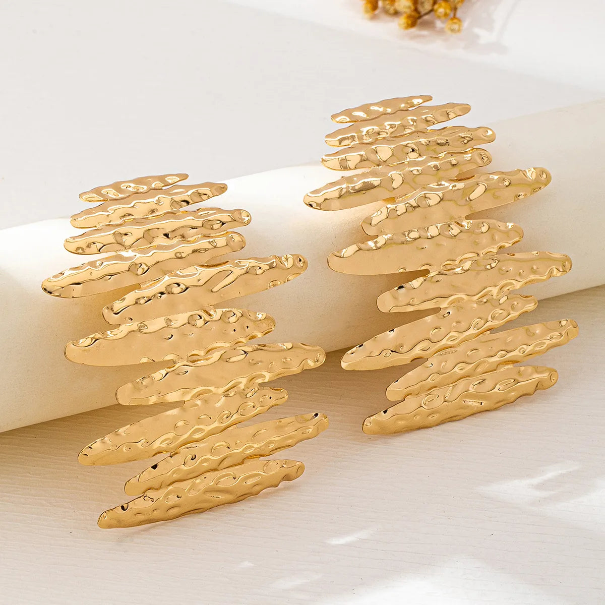 Fashionable Old Money Style Exaggerated Pleated Geometric Street Style Party Chic Women's Earrings Iron Alloy 201 Stainless Steel Post. 3.47 inch long and 2.89 inches wide